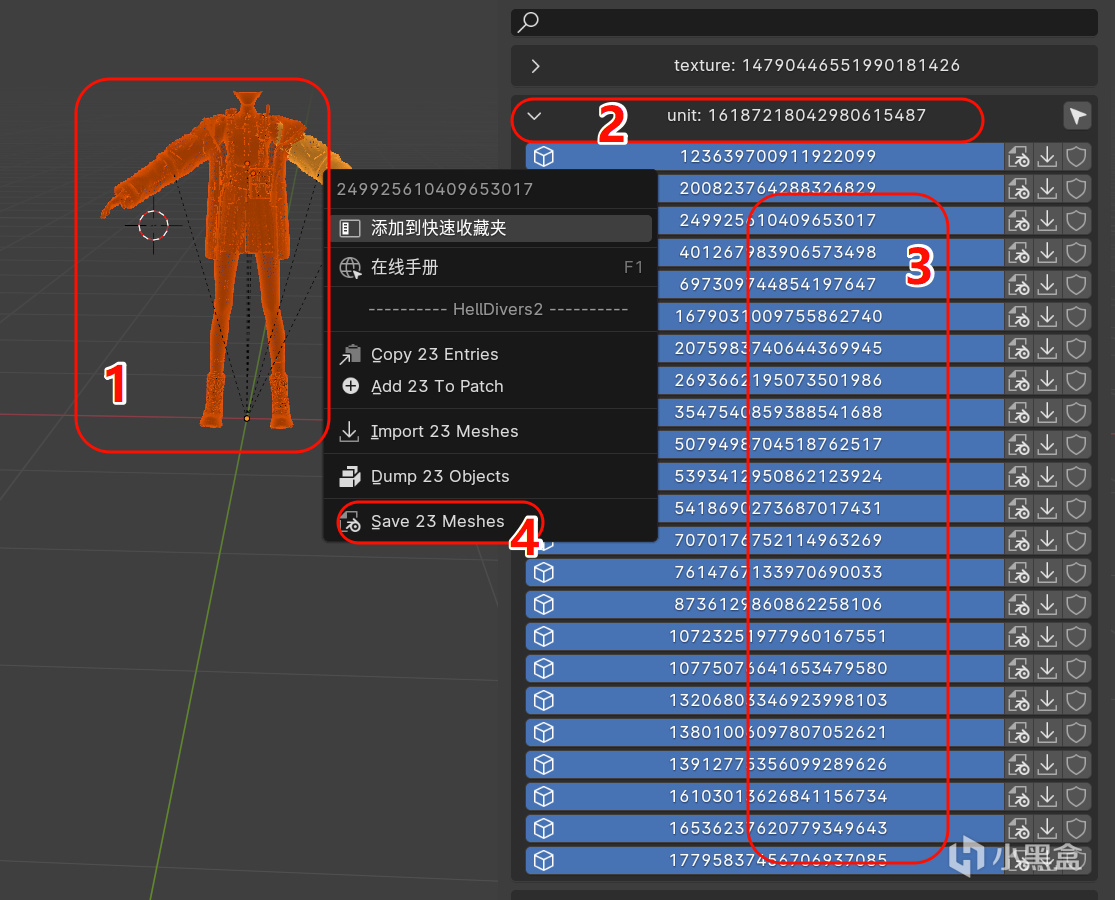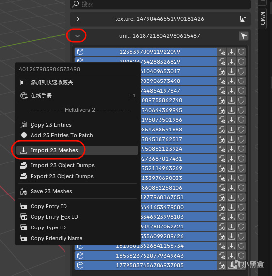 1. 在**[unit]选项中,全选所有项目,并选择[Import xx Meshes]**