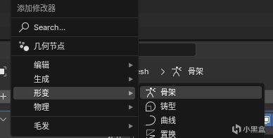 1. 返回**[物体模式],在[修改器]处选择[添加修改器]-[形变]-[骨架],并在[物体]**处重新添加原来的骨骼,这样您就又能重新调整模型姿态