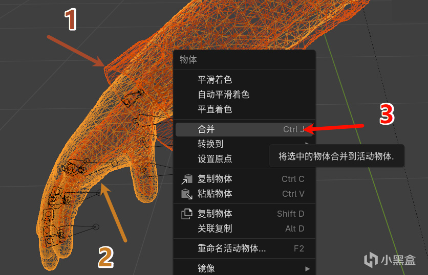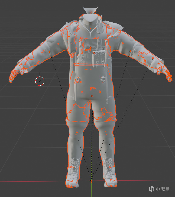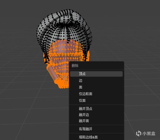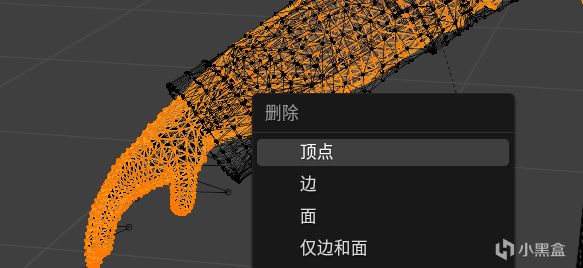 1. 框选所选盔甲,按住**[Shift]选中1到2个相邻的顶点后,按[X]选择删除顶点,切换为[物体模式]后按[G]**移动剩下的顶点将其藏于肢体内