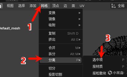 1. 在**[网格]-[分离]-[选中项]中,分离你选中的部位,回到[物体模式]**,你就会发现,你可以单独选择分离的部位