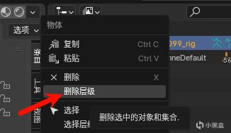 1. 接着在**[场景合集]中,选择潜兵的模型右键[删除层级]**。当然,你点击右侧小眼睛全部隐藏也是可以的 !