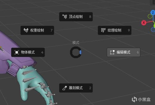 1. 选中其中任意护甲,按住**[Ctrl+Tab]**切换到编辑模式,如果你没有出现如图的菜单,恭喜你,你点到骨架了