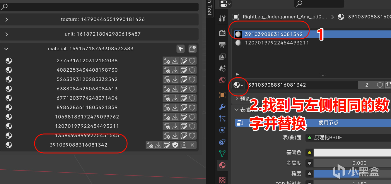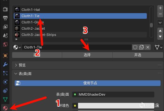 • 若不知道是否需要删除,可以切换为**[编辑模式]**,在材质界面选中材质看目标部位是否有节点被选中