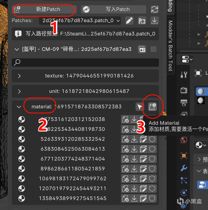 1. 随后点击**[新建Patch],并打开[material]后点击[Add Material]**