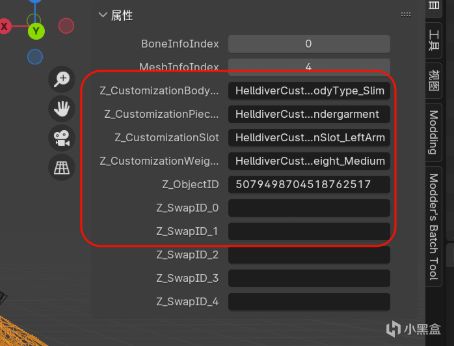 1. 在**[物体模式]下,先点击你自己的模型,再按住[shift]点击同部位的潜兵模型,确保合并后[条目]内有潜兵模型的属性,教程中只与潜兵的[slim]**模型合并