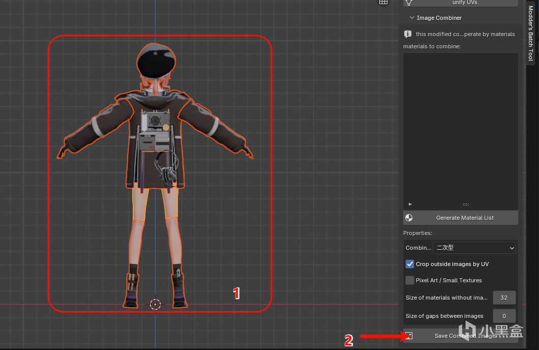 1. 框选全部模型,在右侧**[Modder’s Batch Tool]插件面板中找到[Save Combined Image]**,并点击,点击后保存文件在你能找得到的地方