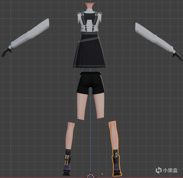 • 根据潜兵的切分方式来分离你自己的模型,可以看到潜兵的模型,小腿的分离方式是一直到关节往上的,所以你也可以与潜兵模型一样,切到关节往上