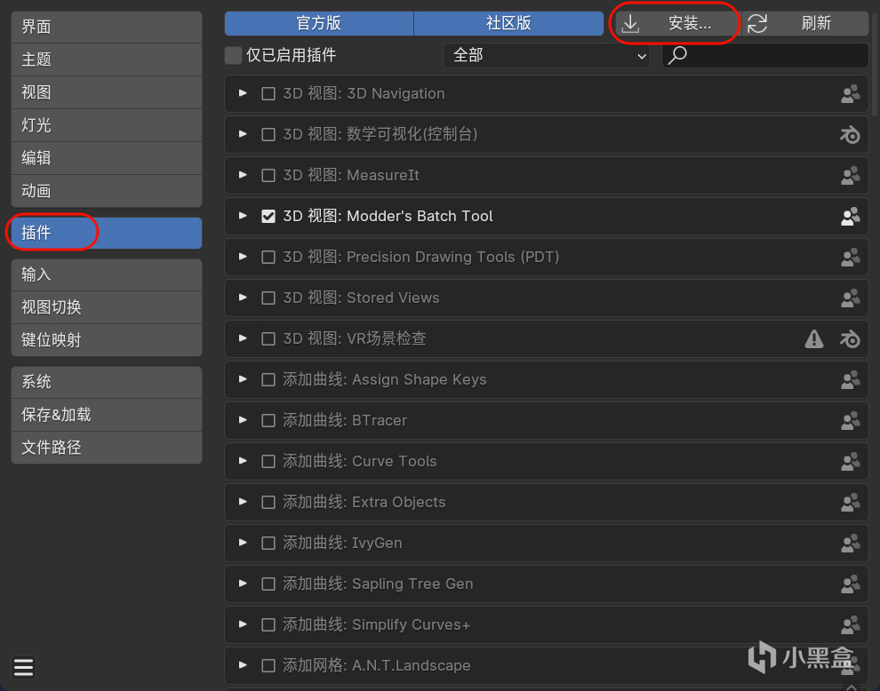 注意:不同版本的Blender**[插件]**界面会有稍微的区别,但都大差不差。