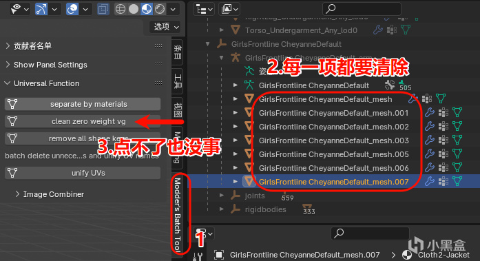 若你的模型有[形态键],请将[形态键]移除再尝试操作#