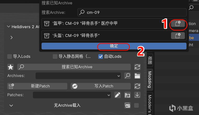 1. 接下来选择[Search Found Archives | 搜索已知Archive],搜索你想替换的模型,并点击如图所示按钮后,点击确定